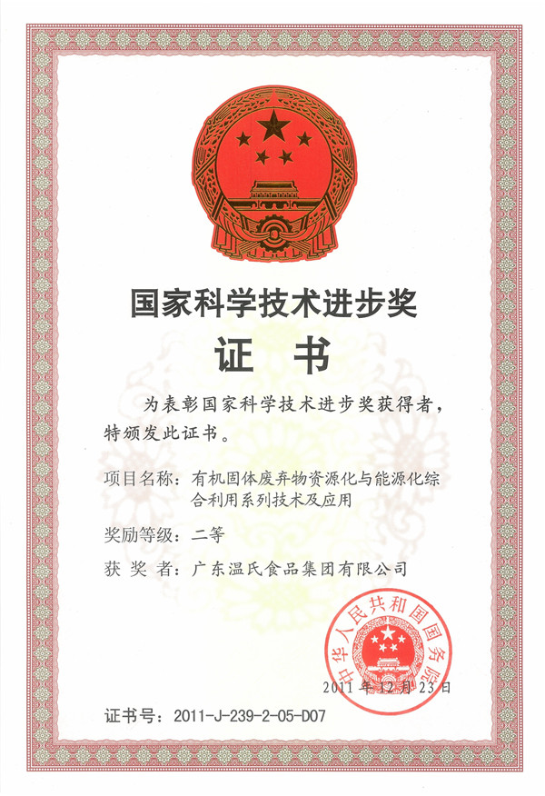 国家科学手艺前进奖二等奖-好博(中国)体育集团科技项目《有机固体放弃物资源化与能源化综合使用系列手艺及应用》